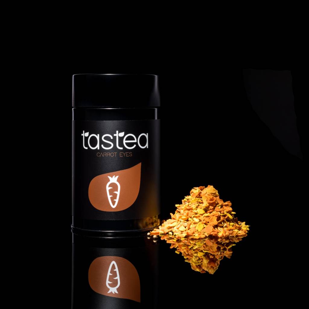 De geur van deze kleurrijke blend doet denken aan een pikante Indiase curry. Yum! De zachte smaak van wortel wordt aangevuld door een sensatie aan kruiden en specerijen die zorgen voor een pittige touch. Ook deze zorgvuldig samengestelde groene thee van Tastea bevat het magische bestanddeel Kurkuma, beter bekend als de ‘spice of life’ in India… Neem een moment voor jezelf met dit oranje goedje en laat je verrassen! Niet alleen je smaakpapillen, maar ook je ogen zullen je dankbaar zijn ;)